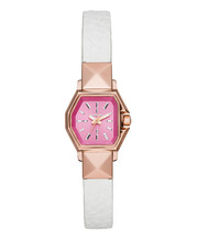 腕時計は白い皮のベルトに