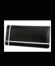 周りが黒で白い線が入った長財布