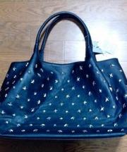 ジミーチュウの青いトートーバックにiPadなど小物が入っています。