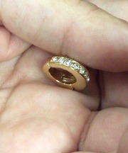 イヤリングの片方 シルバーのリングで側面に9つの透明な石
