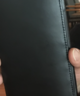 茶色の革の巾着 中に入っているものは、黒の小銭入れと薬ケース