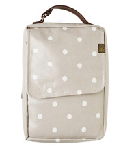 縦型水玉模様ベージュのオムツポーチ(Rompbaby) お守りが付いてます!