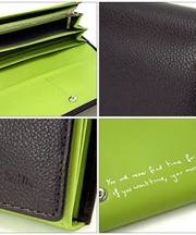 添付画像にもあります通り、茶色レザーの長財布、中地はグリーンです。