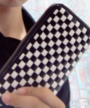 黒と白のチェック模様の長財布