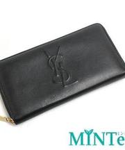 黒い革製の長財布 YSLのロゴ入り